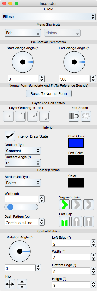 End Wedge Angle : The end angle, from the y = 0, x > 0 line, of the wedge section. Note: The wedge section is not the empty area but rather the remaining circle part. The dial control is described in the Dial section.