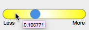 Adjust the associated scalar (a number) by selecting a point within the slider area. The scalar value will alter to a value proportional to the distance from the starting boundary of the slider.