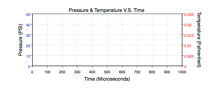 The figure below shows a typical use of a multiple coordinate graph. The concept is to show how pressure changes in relation to temperature over time. The pressure would be shown by a blue curve, bar, etc. and the temperature by a red curve, bar or other graphical element(s), thus color distinguishes which coordinate the data goes with. Another way to view this data would be with a Single Coordinate Graph showing pressure v.s. temperature with a trajectory graphic where the parametric variable is time. There are reasons to show both formats.