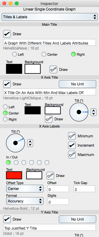 This section describes graph titles and labels and how to adjust them. The figure below shows some more unusual settings.