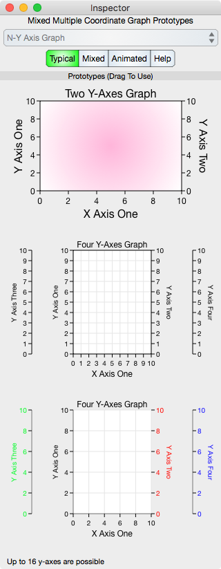 When a factory cell in the Graphic Selector is selected then the inspector is loaded with prototypes that correspond to that factory cell. One such prototype inspector editor for the Multiple Coordinate Graph is shown below.